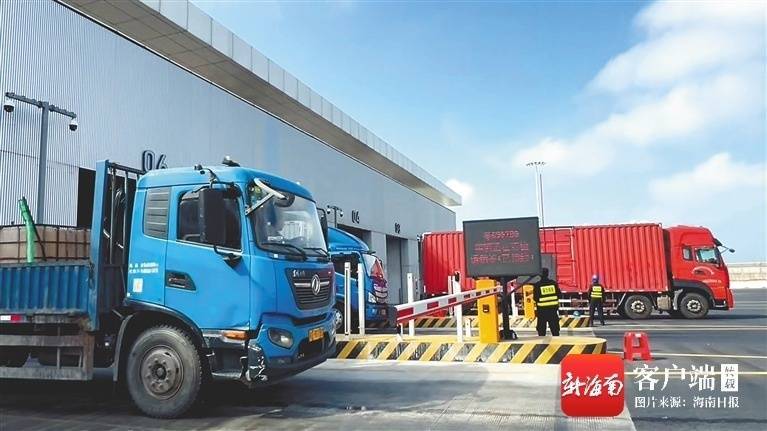 1月30日中午,在海口新海港和南港“二线口岸”(货运)集中查验场,货车仅用不到1分钟便完成安检通过闸口。海南日报全媒体记者 郭萃 摄